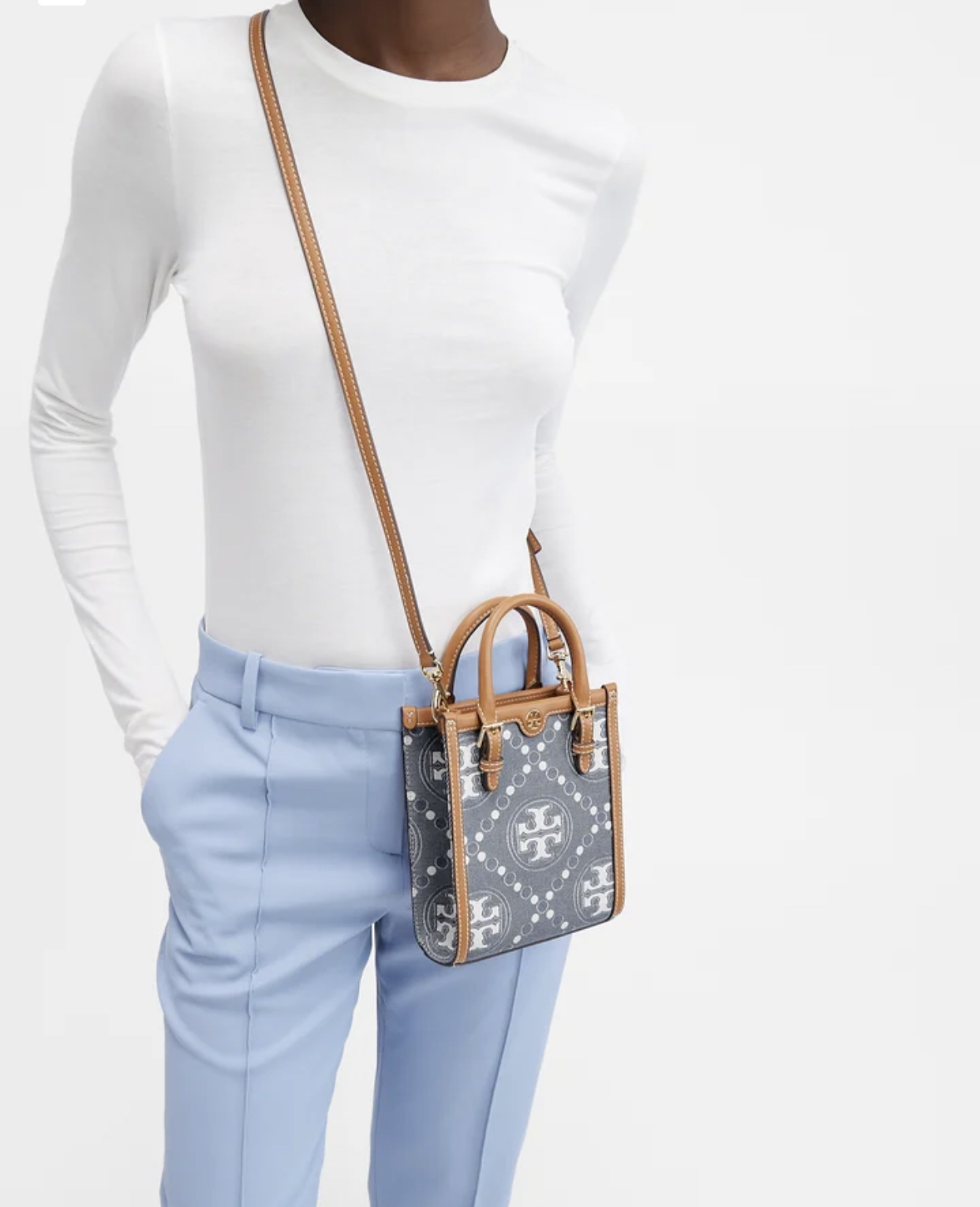 Detachable strap with 25 1/2″ drop for shoulder or crossbody wear